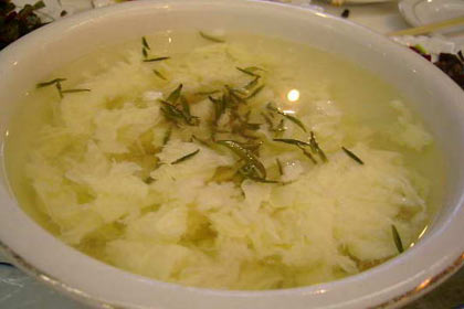 珍貴的“龍井茶”,如果泡過(guò)一兩趟水以后就倒掉,實(shí)在有點(diǎn)可惜了。如果用泡過(guò)的茶葉做一道“綠茶拌豆腐”的菜肴,在這個(gè)初春時(shí)節(jié),吃起來(lái)倒別有一番橄欖菜的味道,且營(yíng)養(yǎng)豐富,非常清涼、好吃。