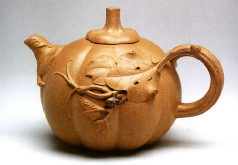 塑器造型一般稱為“花貨”,是對雕塑性器皿及帶有浮雕、半圓雕裝飾器皿造型的統(tǒng)稱。將生活中所見的各種自然形象和各種物象的形態(tài)透過藝術(shù)手法,設(shè)計成器皿造型,如將松竹梅等形象制成各種樹樁形造型?;蛘呤窃趫A器及方器選型上運用雕、鏤、捏塑等手法,將自然形體變化為造型的部份,如壺的嘴、把、蓋、鈕,或者是在造型的顯見部位施以簡潔的堆雕裝飾。壺體上這些堆雕,總是要求寧簡勿繁,做到主次分明,以達到視覺上的和諧與平衡。這種壺藝造型規(guī)則是“源于自然,而高于自然,造型不僅應(yīng)具有適度性的藝術(shù)夸張,又應(yīng)著意于風(fēng)格瀟灑”。例如此類壺藝以松竹梅為裝飾題材時,勁松要刻劃出枝干勁拔,針葉挺秀,氣勢鏗鏘;秀竹則要求嫻靜有致,俊逸瀟灑;冬梅又須主干蒼勁,寒中獨俏,素枝閑花,以簡為主,達到疏中見密,少里寓多,富有活力氣息的藝術(shù)效果。所以,紫砂塑器不僅應(yīng)形象生動,構(gòu)圖簡潔,而且應(yīng)巧妙地利用紫砂泥料的天然色澤來增強其藝術(shù)效果。