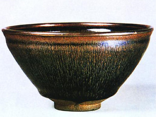 建窯鷓鴣斑星盞 宋由于斗茶需要比較水痕,顏色較深的建窯瓷成為了宋代流行的茶具。