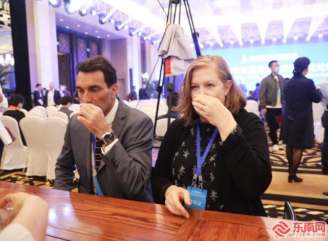 外國(guó)友人在論壇現(xiàn)場(chǎng)品茶。 林先昌攝