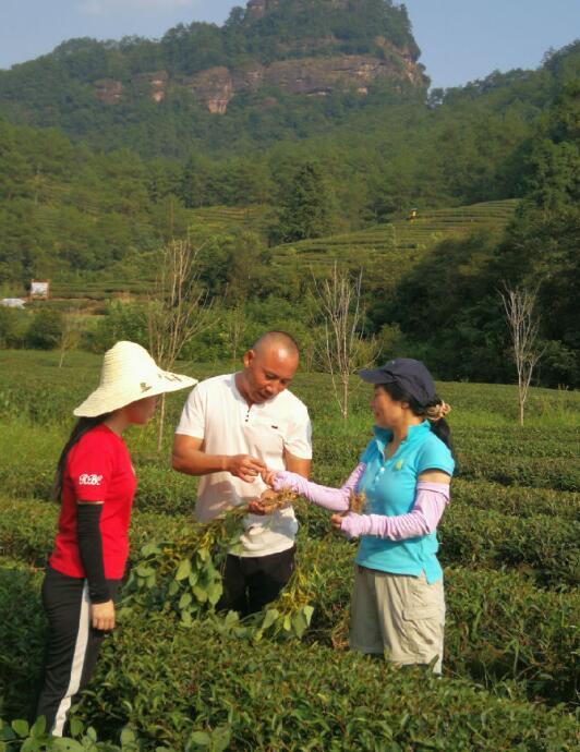 為探索茶園高效、生態(tài)、環(huán)保建設(shè)模式,福建農(nóng)林大學(xué)根系生物學(xué)研究中心主任廖紅與團(tuán)隊(duì)走進(jìn)星村鎮(zhèn),把高效豆科作物提高茶樹的養(yǎng)分利用效率,并達(dá)到減肥增效等科研成果,運(yùn)用到茶葉基地建設(shè),以提高茶葉的產(chǎn)量及質(zhì)量。廖紅教授認(rèn)為,茶豆套種作用明顯,大豆可產(chǎn)生根瘤菌,具有固氮作用,增加土壤肥力,茶園里套種大豆可少下或不下氮肥。同時(shí),金龜子、蚜蟲等更喜歡大豆葉子,從而減少茶樹蟲害。還能增加茶葉產(chǎn)量,實(shí)驗(yàn)表明,靠近大豆的茶樹每平方米可長(zhǎng)出190個(gè)芽梢數(shù),比沒(méi)有靠近大豆的茶樹多出一倍。